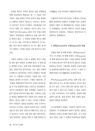 거칠다. 호흡 단위의 시작과 중간과 끝을 관찰하 隨)를 완벽하게 이해하고 수련해야 한다. 호흡과