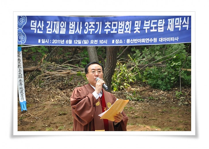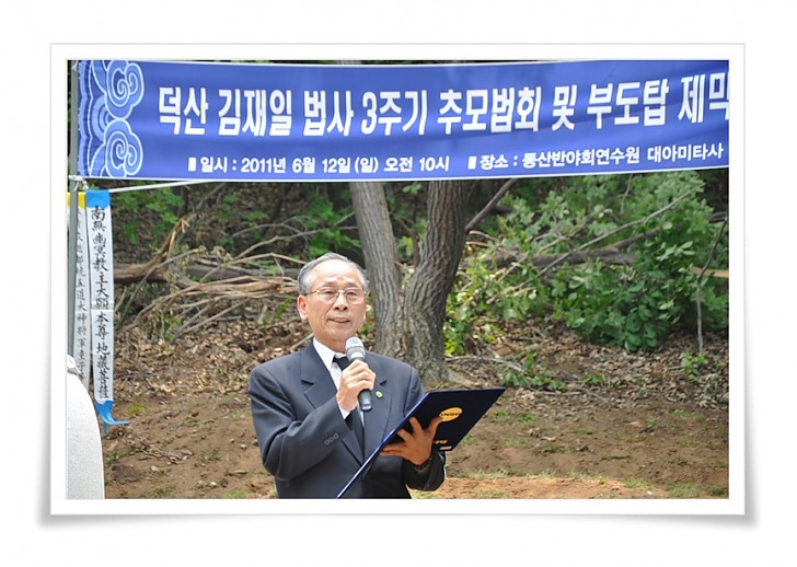 덕산 김재일법사 3주기 추모법회 및 부도탑 제막식 페이지 정보 작성자 관리자 작성일11-06-13 22:55 조회1,007회 댓글0건 목록 본문 ㅇ 일 시 : 2011. 6. 12 (일)ㅇ 장 소 : 동산반야회 연수원 대아미타사 댓글목록 등록된 댓글이 없습니다. 목록