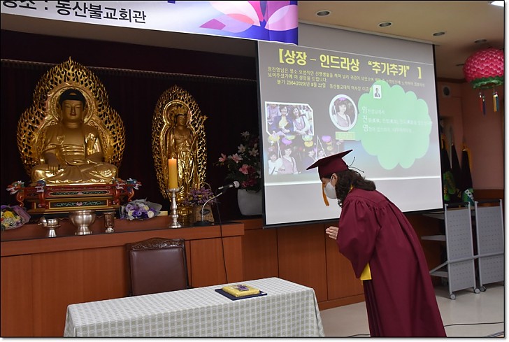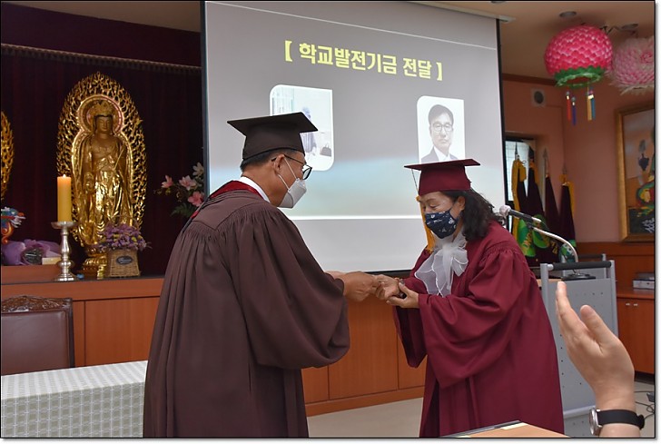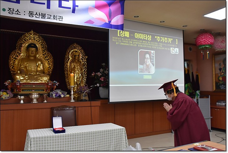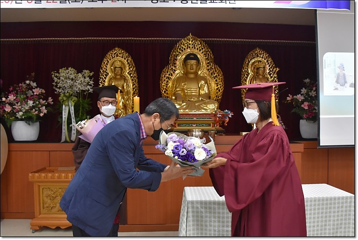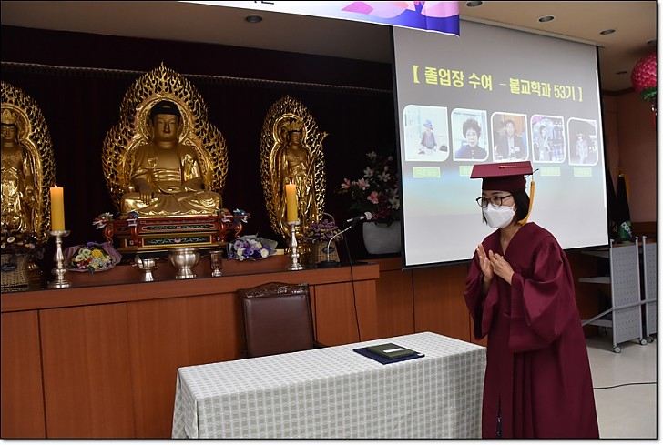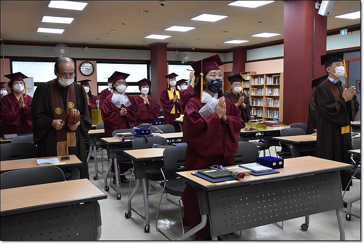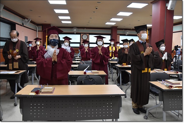 제53회 동산불교대학 . 대학원 졸업식 페이지 정보 작성자 관리자 작성일20-09-08 17:33 조회445회 댓글0건 목록 본문 제53회 동산불교대학. 대학원 졸업식 일시 : 불기2564(2020)년 8월22일(토) 오후3시 / 장소 : 동산불교대학 교육관2층 * <코로나19> 감염 위험을 최소화하기 위하여 졸업식전 개인별 기념 촬영외에 모든 일정은 거리두기를 위한 1인 1좌석과 스크린을 통한 비접촉행사로 진행되었다. 댓글목록 등록된 댓글이 없습니다. 목록